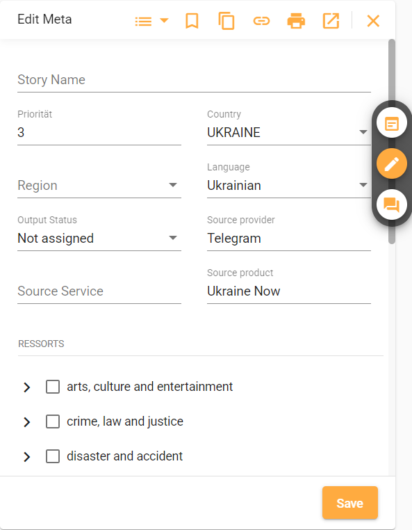 By entering keywords and selecting ressorts in the search bar, you can quickly locate stories that match your search criteria. This feature helps you efficiently search for and retrieve relevant news items based on specific topics or keywords of interest.