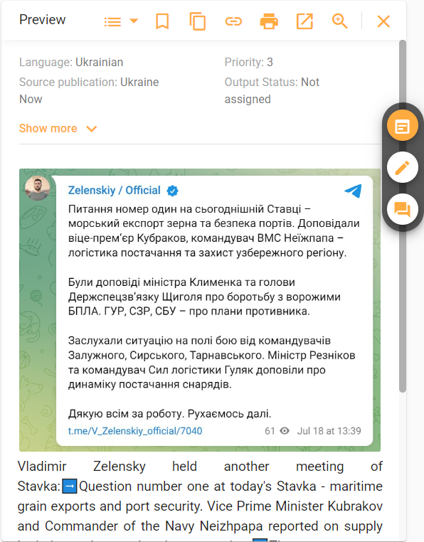 Preview: This section provides a preview of the selected news item. It may display a summary or excerpt of the content, along with any associated images or media.