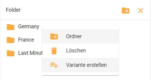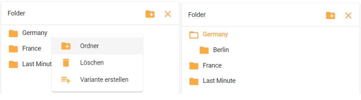 It is also possible to create subfolders, by right-clicking on a folder and selecting the option folder.