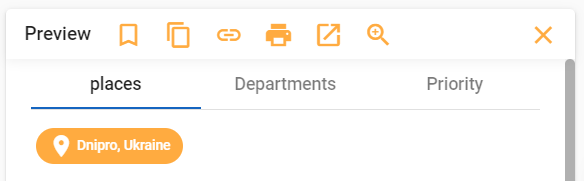 The metadata is divided into different categories: Places, People, Organisations, Departments and Priority. You can switch between the different categories using the arrows.