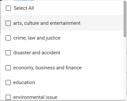 Language: Narrow down the search by selecting a specific language. This is helpful when you want to filter news items based on the language they are written in.