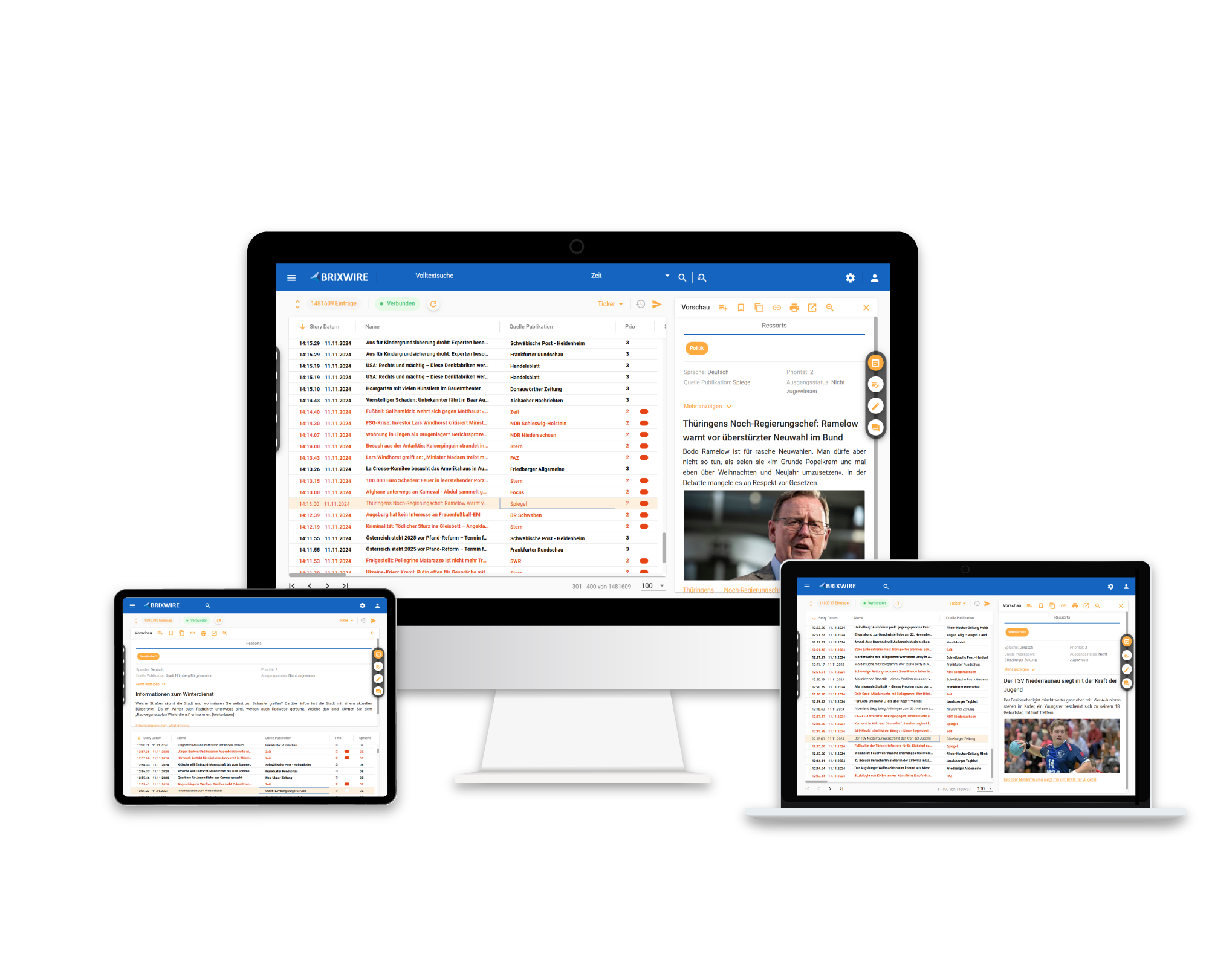 BrixWire ist der maßgeschneiderte News-Hub für Redaktionen und Medienhäuser. Die Software vereint Inhalte und zugehörige Assets aus unterschiedlichsten Quellen – von Presseagenturen über CMS bis hin zu Planungs- und Redaktionssystemen.
